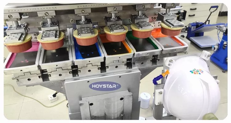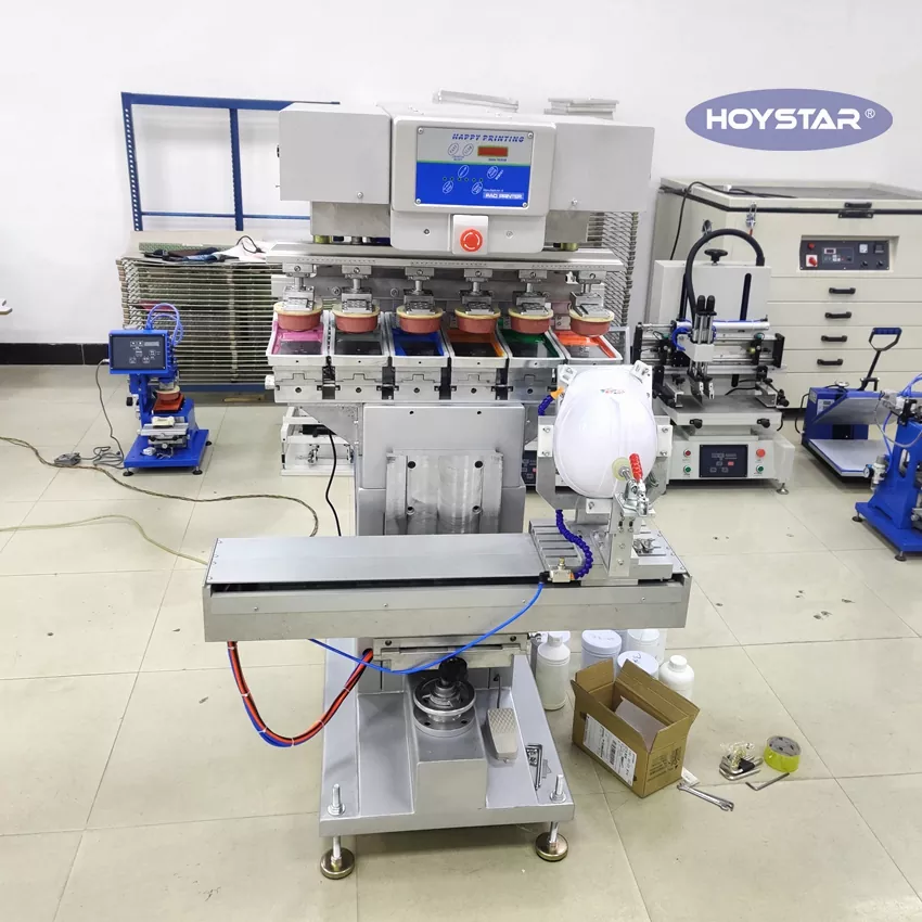 ໃນຖານະເປັນຜູ້ຜະລິດ ແລະຜູ້ສະໜອງມືອາຊີບ, HOYSTAR 6 Color Pad Printer With Shuttle Worktable ເປັນອຸປະກອນການພິມທີ່ມີຄວາມສາມາດສູງ ແລະປະຫຍັດຄ່າໃຊ້ຈ່າຍ. ເຄື່ອງຈັກສະຫນອງການປັບຕົວທີ່ສະດວກ, ການດໍາເນີນງານທີ່ຫມັ້ນຄົງແລະຜົນການພິມທີ່ດີ. ເຄື່ອງດັ່ງກ່າວໃຫ້ຄຸນນະພາບການພິມທີ່ຄົງທີ່ແລະເຫມາະສົມສໍາລັບການພິມຫຼາກຫຼາຍລາຍການເຊັ່ນ: ຜະລິດຕະພັນເອເລັກໂຕຣນິກ, ແກະພາດສະຕິກ, ຜະລິດຕະພັນຮາດແວ, ເຄື່ອງຂຽນ, ສິລະປະແລະຫັດຖະກໍາຂະຫນາດນ້ອຍ, ເຊັ່ນດຽວກັນກັບໂລໂກ້ຂະຫນາດນ້ອຍຢູ່ເທິງຫນ້າຂອງຂອງຂວັນແລະອື່ນໆ. ສາມາດຕອບສະຫນອງຄວາມຕ້ອງການການພິມທີ່ຫຼາກຫຼາຍຂອງລູກຄ້າ.