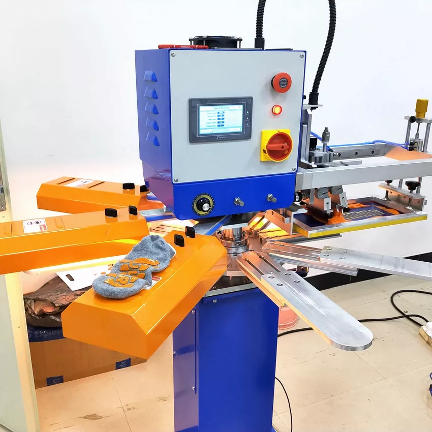 ໃນຖານະເປັນຜູ້ຜະລິດ ແລະຜູ້ສະໜອງມືອາຊີບ, HOYSTAR High Rapid Anti Slip Socks Screen Printing Machine ຖືກອອກແບບມາສໍາລັບຄໍາຮ້ອງສະຫມັກໃນອຸດສາຫະກໍາການຖັກແຜ່ນແພ. ດ້ວຍຄວາມໄວເຖິງ 1000PCS/Hr, ມັນເຫມາະສົມສໍາລັບການພິມຖົງຕີນທີ່ບໍ່ເລື່ອນ, ຖົງຕີນເດັກນ້ອຍ, ຖົງຕີນຜູ້ໃຫຍ່, ຖົງຕີນ soccer, ແລະອື່ນໆ. ການຄວບຄຸມຫນ້າຈໍສໍາພັດ PLC, ງ່າຍຫຼາຍທີ່ຈະດໍາເນີນການ. ເຄື່ອງທີ່ຕິດຕັ້ງດ້ວຍລະບົບການອົບແຫ້ງສາມາດແຫ້ງຊິລິຄອນແລະຫມຶກໄດ້ດີ.