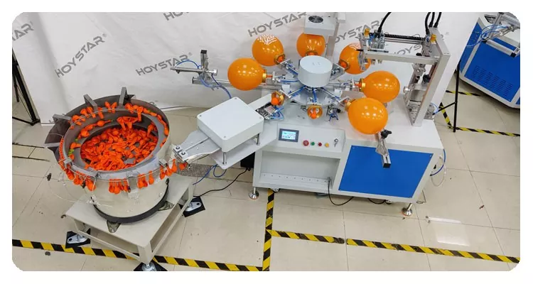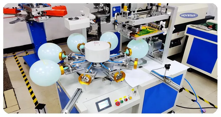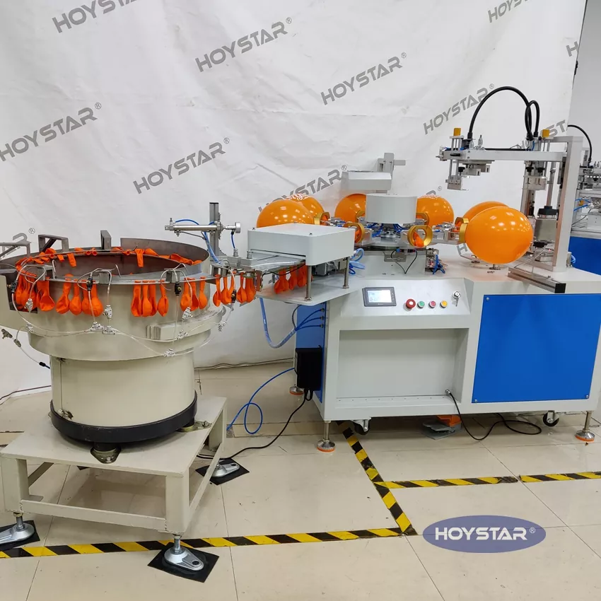 ໃນຖານະເປັນຜູ້ຜະລິດແລະຜູ້ສະຫນອງມືອາຊີບ, HOYSTAR Full Automatic 1 Color Balloons Screen Printing Machine. ຖືກອອກແບບມາສໍາລັບການພິມໃສ່ປູມເປົ້າຢາງ. ມາພ້ອມກັບຕາຕະລາງເຮັດວຽກ rotary, ການໂຫຼດອັດຕະໂນມັດ, ການເປົ່າອັດຕະໂນມັດ, ການຫມຸນອັດຕະໂນມັດ, ການອົບແຫ້ງອັດຕະໂນມັດ, ຟັງຊັນ unloading ອັດຕະໂນມັດ. ການຄວບຄຸມຫນ້າຈໍສໍາພັດ PLC, ການໂຕ້ຕອບຜູ້ເປັນມິດສໍາລັບການປະຕິບັດທີ່ປອດໄພ, intuitive. ເຄື່ອງປະສົມປະສານຄວາມໄວ, ຄວາມແມ່ນຍໍາແລະຄວາມງ່າຍໃນການນໍາໃຊ້.