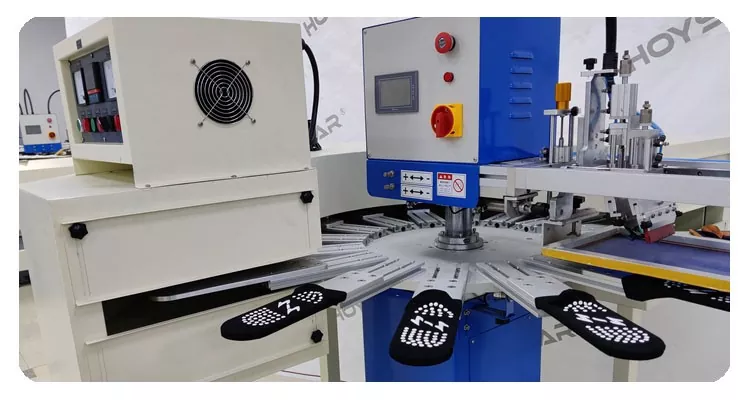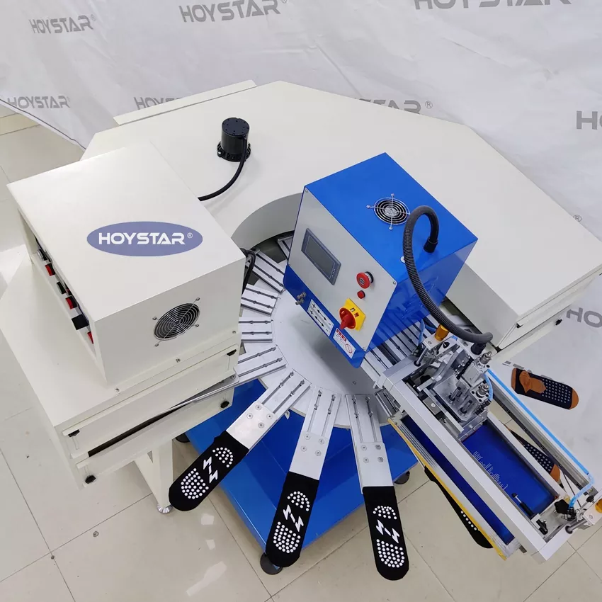 ໃນຖານະເປັນຜູ້ຜະລິດແລະຜູ້ສະຫນອງມືອາຊີບ, ນີ້ HOYSTAR ເຄື່ອງພິມຫນ້າຈໍຜ້າໄຫມ Socks ຂະຫນາດຂະຫນາດໃຫຍ່ຢ່າງໄວວາໄດ້ຖືກອອກແບບສໍາລັບຄໍາຮ້ອງສະຫມັກໃນອຸດສາຫະກໍາຖັກແຜ່ນແພ. ດ້ວຍຄວາມໄວເຖິງ 1200PCS/Hr, ມັນເຫມາະສົມສໍາລັບການພິມຖົງຕີນທີ່ບໍ່ມີຮອຍແຕກ, ຖົງຕີນເດັກນ້ອຍ, ຖົງຕີນຜູ້ໃຫຍ່, ຖົງຕີນ soccer, ແລະອື່ນໆ. ມາພ້ອມກັບຕາຕະລາງເຮັດວຽກ rotary ແລະ 16 workstation, ມັນສະດວກຫຼາຍໃນການໂຫຼດແລະ unloading socks. ການຄວບຄຸມຫນ້າຈໍສໍາພັດ PLC, ງ່າຍຫຼາຍທີ່ຈະດໍາເນີນການ. ເຄື່ອງທີ່ຕິດຕັ້ງດ້ວຍລະບົບການອົບແຫ້ງສາມາດແຫ້ງຊິລິຄອນແລະຫມຶກໄດ້ດີ.