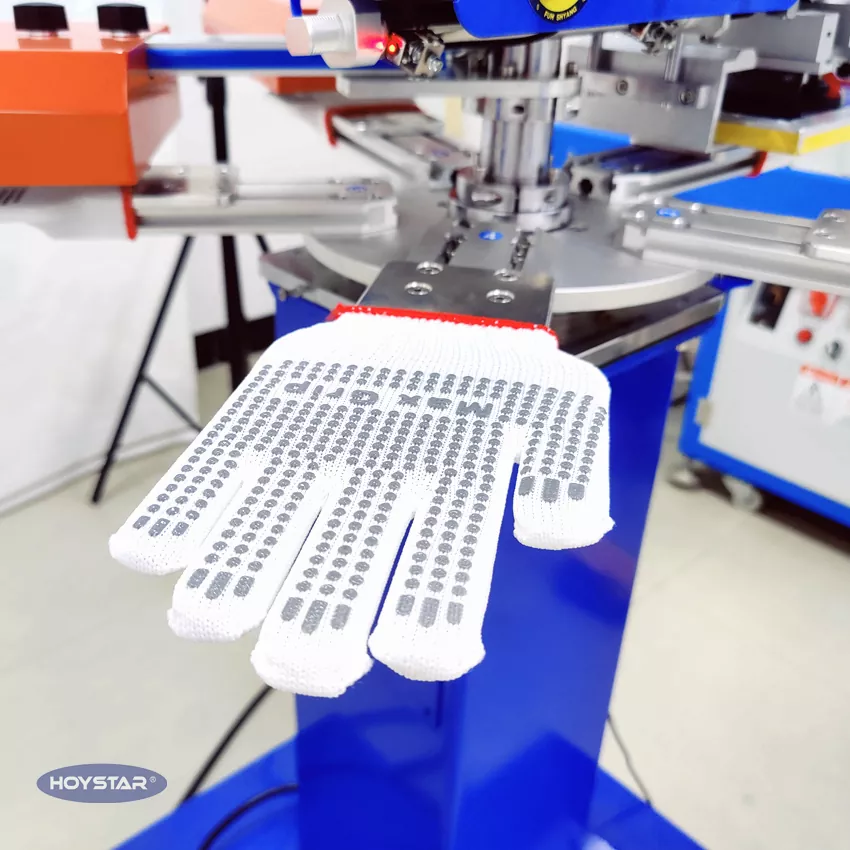 ໃນຖານະເປັນຜູ້ຜະລິດແລະຜູ້ສະຫນອງມືອາຊີບ, HOYSTAR High Rapid Non Slip Gloves Screen Printing Machine ຖືກອອກແບບມາສໍາລັບຄໍາຮ້ອງສະຫມັກໃນອຸດສາຫະກໍາແຜ່ນແພ. ດ້ວຍຄວາມໄວເຖິງ 1000PCS/Hr, ມັນເຫມາະສົມສໍາລັບການພິມຖົງມືເຮັດວຽກ, ຖົງມືຝ້າຍ, ຖົງມືຖັກ, ແລະອື່ນໆ. ການຄວບຄຸມຫນ້າຈໍສໍາພັດ PLC, ງ່າຍຫຼາຍທີ່ຈະດໍາເນີນການ. ເຄື່ອງທີ່ຕິດຕັ້ງດ້ວຍລະບົບການອົບແຫ້ງສາມາດແຫ້ງຊິລິຄອນແລະຫມຶກໄດ້ດີ.
